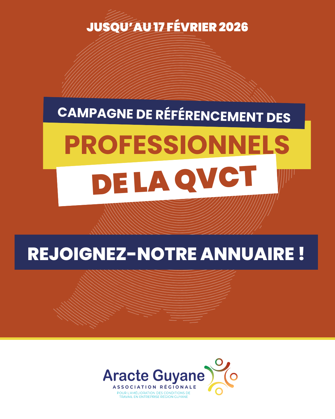 Dans le cadre de ses missions visant à promouvoir la Qualité de Vie et les Conditions de Travail (QVCT) en Guyane, l’ARACTE Guyane lance une campagne de référencement afin d’identifier et de recenser les prestataires spécialisés dans ce domaine.